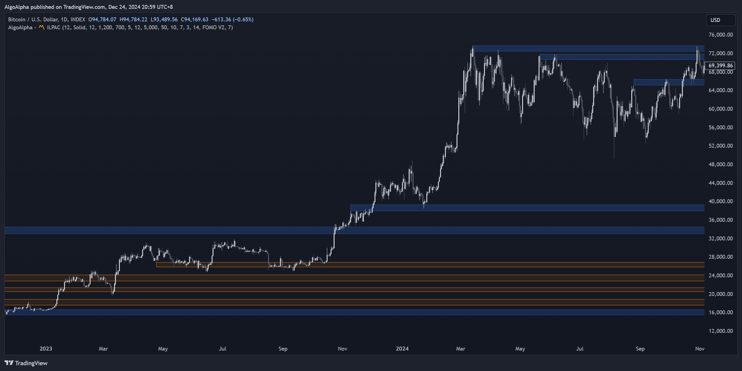 * **FOMO Bubbles:** Watch for FOMO bubbles near S/R zones to confirm potential reversals or continuations.