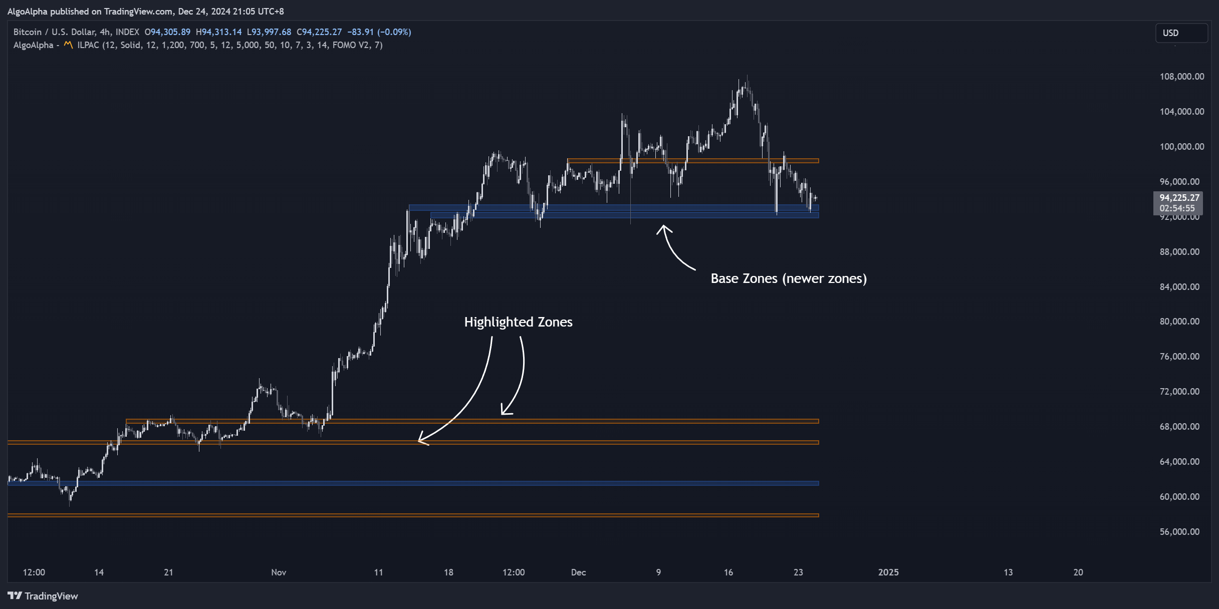 Pay attention to highlighted zones, as they indicate active interaction with price. These zones are more likely to trigger significant market responses.